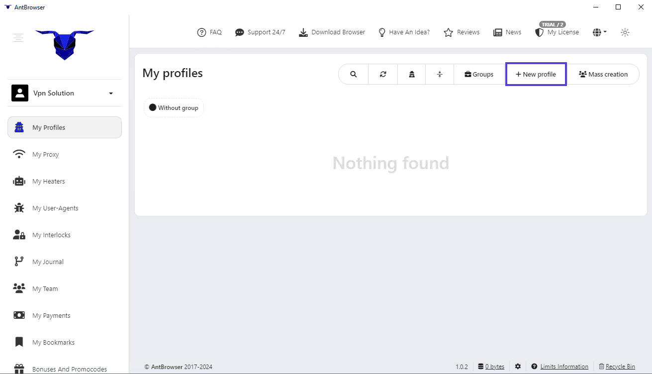 Start by downloading and installing AntBrowser. Create an account and log in to get started.