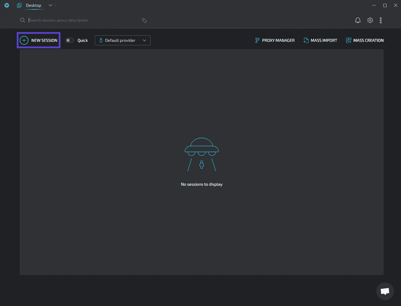 To optimize your browsing experience in Sphere Browser, ensure that Quick Session Mode is switched off upon opening the browser, then click on the "New Session" button to initiate a new browsing session.