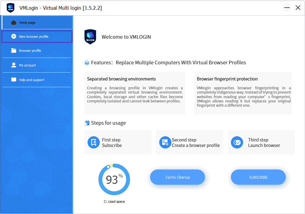 Start by downloading and installing VMLogin Browser. Create an account and log in to get started.
