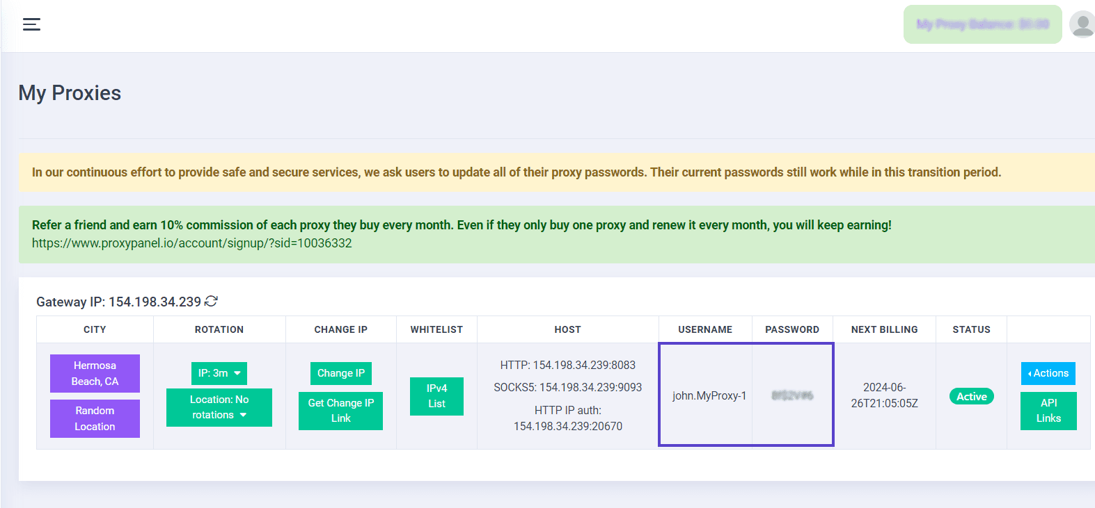 Go to your Dashboard panel and navigate to the "My Proxy" section to view your IP information.